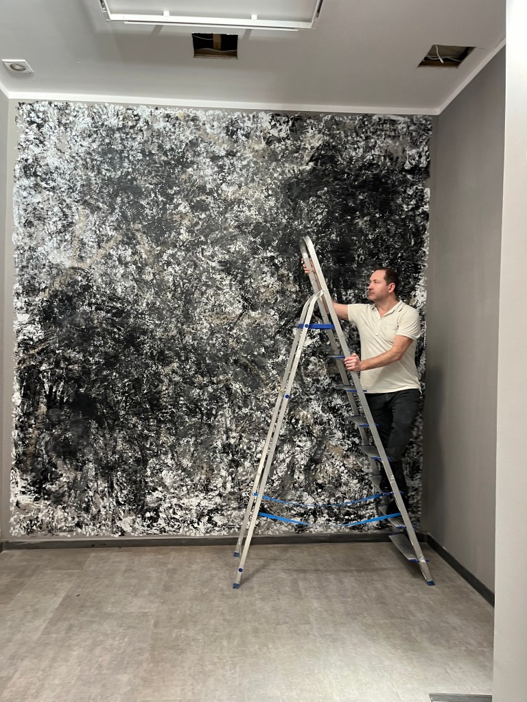 Māris Čačka – artist, curator and director of the world-renowned Rothko Museum in Daugavpils, Latvia – has developed a unique hybrid method of abstract expression that integrates painting and graphics. His works are multi-layered in technique and content, unfolding as imaginary dialogues between the artist and his contemporaries about the meaning of the world today. Čačka’s creative expression is free and intuitive, as he aims for emotional harmony in himself and the finished artwork. Thus, he is equally open to largely decorative construction and a profound symbolic message contained in such elements as colour, darkness and light, and their rhythmical structures emerging on the canvas plain. At Surnadal Billag, Čačka creates his third work on a brick wall. Taking full use of the excellent location that offers opportunities for large-scale expression, he conveys his sense of Norwegian nature. His residency output captures fragments of stunning Norwegian mountains and breath-taking waterfalls. Latvia is a flat country, without mountains, so he finds waterfalls both fascinating and intensely inspirational.