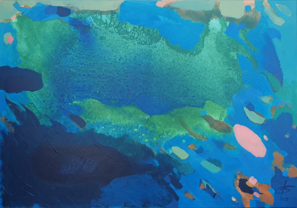 The works contain abstract visual information that does not encourage the perception of the author’s message, but gives the viewer the opportunity to take a journey into the depths of their imagination, at the source of their imagination.