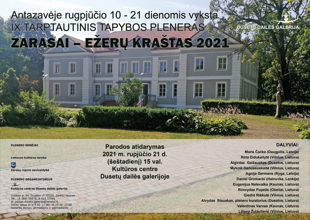 On August 10-21, the IX international painting plein air ′′ Zarasai – Lakes Land 2021 ′′ took place in Antazava where participated artist Māris Čačka. The opening of the works created by Plenary will take place at the Dusetai Art Gallery on August 21. The exhibition on view till 10 September, 2021.